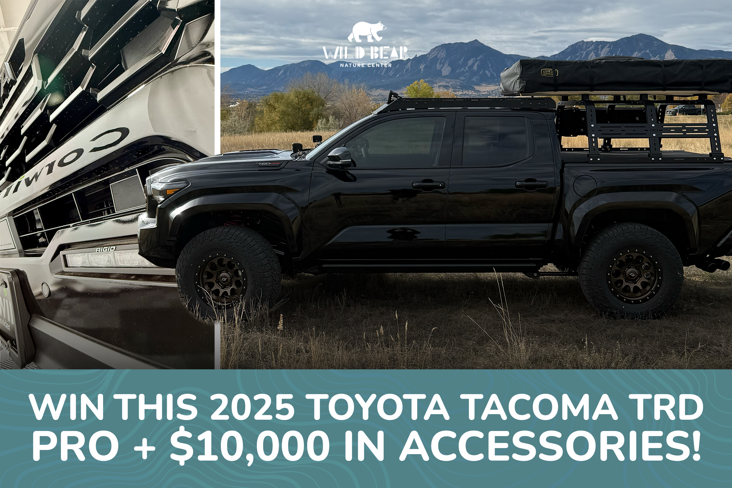 Help us reach our goal! Enter now for your opportunity to win a 2025 Toyota Tacoma TRD Pro (Black) with $10,000 in added accessories, while supporting Wild Bear Nature Center.